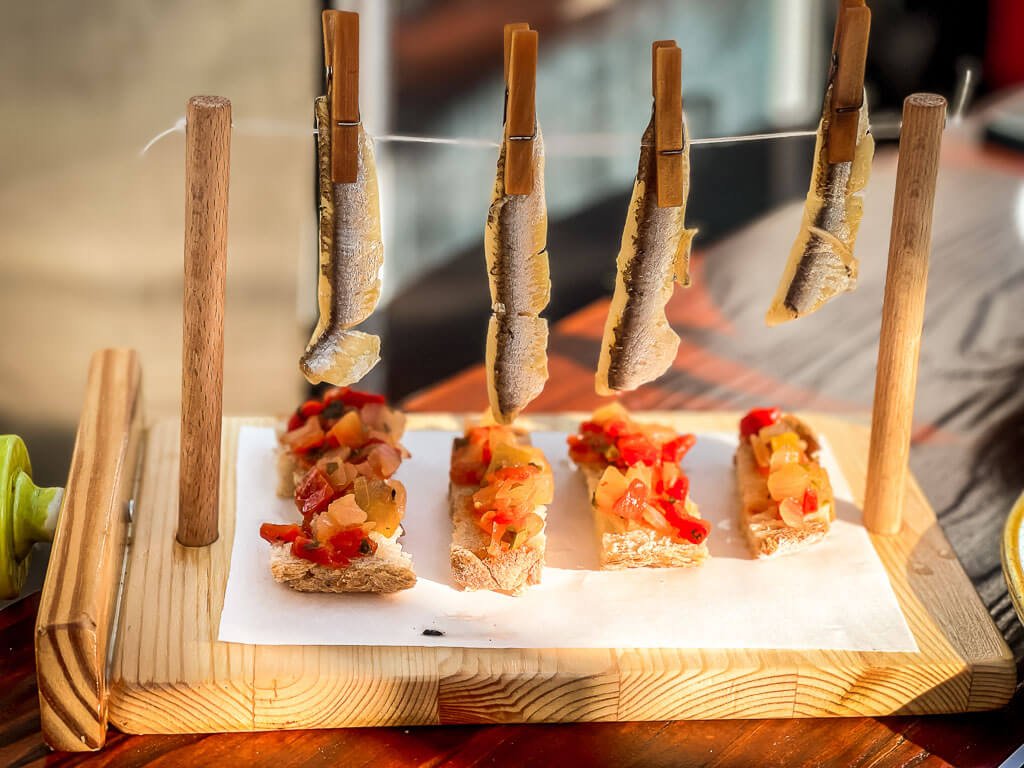 Die Tasquinha do Bruno im Fischerdorf Santa Luzia liegt nicht direkt an der Hafenfront, sondern an einem hübschen Platz in der Ortsmitte. Die Atmosphäre ist familiär und locker, das Restaurant urig und rustikal. Ein absoluter Geheimtipp für alle Liebhaber von Petiscos. Ich habe noch nirgendwo anders eine leckerere gegrillte Chouriço gegessen. Aber auch alle anderen Petiscos wie der Ziegenkäse mit Honig sind frisch und liebevoll zubereitet, die Preise äußerst fair.